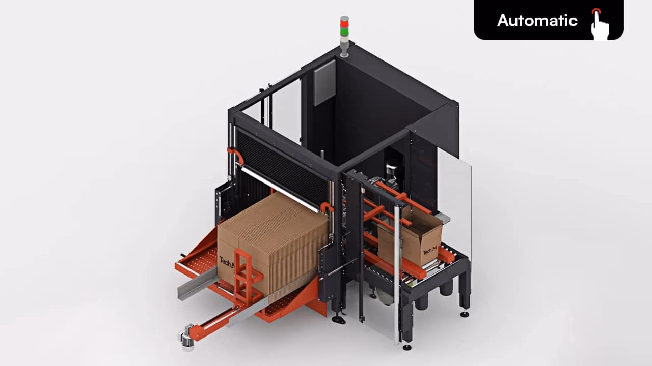 Automatic case erector supporting the widest box range on the market. Graphical touchscreen with on-screen adjustment…